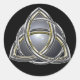 A Classic Trinity Knot (also known as triquetra or triskelion). It's interpretations include the Christian Father, son and Holy Spirit, the Pagan Mother, maiden and crone, or mind, body and spirit