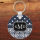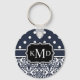 Flourish filigree damask pattern and polka dot print in white and navy blue with custom trio of initials for your first, last, and middle name. Cute elegant trendy girly three monogram design. Cool gift for girls that want a personalised gift that features their 3 initial letters.
