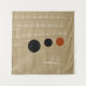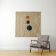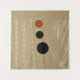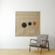 A trio of three spots on a cream and taupe beige irregular patterned background. Two of the spots are black and one is a rusty orange / tan colour. Suitable for a contemporary or minimalist home decor.