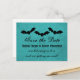 Announce to your friends and families that you have set a date for your wedding with this grungy and spooky Halloween-themed design. This Trio of Bats Halloween Save the Date Postcard in turquoise features a faux textured paper background and a trio of shadowy bats. Easy to customise, simply add your wedding details. Click on the "Customise It" button to find options to change fonts, text colours or add/remove text.