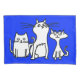 A drawing of three cute and odd looking cartoon cats sitting together in a row.