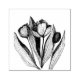 hand drawing made into a stamp. Black and white drawing of tulips, done in ink calligraphy pen