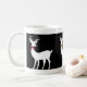 Holiday Coffee Mug, Trio of White Christmas Reindeer with Holiday Bows (red, gold and green); Black and White design, with just a touch of holiday colours in the reindeer bows. A simple but elegant way to add the holidays to your decor. #Christmas #BlackandWhite #holiday #mug #reindeer
