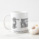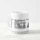 Perfect for the Blacksmith. This is a white coffee cup with 4 old pictures of Trip Hammers and Helve Hammers on it. Around the bottom is a description of the machines.