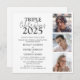 Triple up the graduates celebrations with a triple graduation party! These modern 3 photo graduation party invitations feature, 3 of your favourite photos, the graduates names, class of, and high shool name. With a stylish party invitation template and all font styles, their sizes and colours can be changed by clicking on the customise further link after personalising.