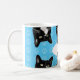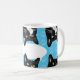 Add your own spin to this cute blue background triple tuxedo cat pattern thought bubble bright idea customisable blank saying outdoor speaking kitty photograph say meow super cute unique personalizable deluxe ceramic coffee tea or cocoa mug. Get an epic cat photo design cup today.