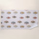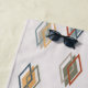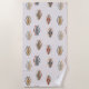 This beach towel has a mid-century modern design of sets of two diamond outlines with one solid diamond, in greys, gold, orange, blue, and tan, scattered about the design on a field of off-white. If you like the design but prefer different colours, message me.
