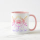 White and Pink mug with the Triple Goddess symbol and lotus in the center.