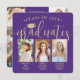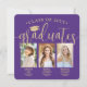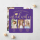 It's a triple graduation! Announce the achievement of three graduates with stylish joint graduation custom photo collage square announcements. The pictures and wording on this template are simple to personalise for announcement cards or grad party invitations. Additionally, the colours can be customised using the Zazzle design tool. (IMAGE PLACEMENT TIP: An easy way to position a photo exactly how you want is to crop it before uploading to the Zazzle website.) The modern purple and gold design features handwritten style script calligraphy with a mortar board cap, elegant classic typography, and nine photos of your choice, such as senior pictures or images from the commencement ceremony. Please note that gold is printed colour, not metallic foil. This graduation invitation card is a stylish way to announce a special day celebration for any group of 3 grads, such as siblings, best friends, cousins, teammates, triplets, brothers and sisters, etc. Congratulations to the graduates!
