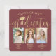 It's a triple graduation party! Announce the achievement of three graduates and invite family and friends to celebrate with stylish joint graduation party square photo invitations. All pictures and wording are simple to personalise, and the burgundy & gold colours can be customised using the Zazzle design tool. (IMAGE PLACEMENT TIP: An easy way to position a photo exactly how you want is to crop it before uploading to the Zazzle website.) This template is a combination announcement card on the front with the grad party invitation on the back. The modern maroon red and gold design features handwritten style script calligraphy with a mortar board cap, elegant classic typography, and 3 photos of your choice, such as senior pictures or images from the commencement ceremony. Please note that gold is printed colour, not metallic foil. This graduation invitation card is a stylish way to announce a special day celebration for any three grads, such as siblings, best friends, cousins, triplets, teammates, brothers and sisters, etc. Congratulations to the graduates!