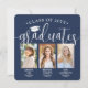 It's a triple graduation party! Announce the achievement of three graduates and invite family and friends to celebrate with stylish joint graduation party square photo invitations. All pictures and wording are simple to personalise, and the colours can be customised using the the Zazzle design tool. (IMAGE PLACEMENT TIP: An easy way to position a photo exactly how you want is to crop it before uploading to the Zazzle website.) This template is a combination announcement card on the front with the grad party invitation on the back. The modern navy blue and white design features handwritten style script calligraphy with a mortar board cap, elegant classic typography, and 3 photos of your choice, such as senior pictures or images from the commencement ceremony. This graduation invitation card is a stylish way to announce a special day celebration for any three grads, such as siblings, best friends, cousins, triplets, teammates, brothers and sisters, etc. Congratulations to the graduates!