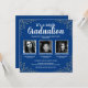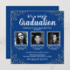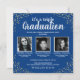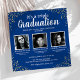Stand out in style with our elegant joint graduation invitations, featuring a customisable trendy blue background. Each invitation is adorned with a sprinkle of gold confetti glitter, showcasing photos of all three graduates, and it's all tied together with our modern triple celebration template. Personalisation has never been easier or looked so chic.