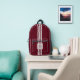This backpack features three grey stripes on a solid autumn burgundy background with a burgundy monogram in a burgundy and grey frame in the centre.
