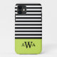 Triple Letter Monogram Green Black White Stripes Case-Mate iPhone Case