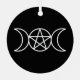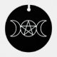 Add a touch of celestial magick to your holiday décor with this round Christmas ornament featuring a striking white Triple Moon Pentacle against a bold black background. The Triple Moon symbol, representing the Maiden, Mother, and Crone, is a powerful emblem of the goddess and the cyclical nature of life, making this ornament a meaningful addition to any witch's collection.