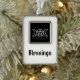 Framed by a delicate white border, this ornament proudly displays the word "Blessings" in elegant black lettering below the pentacle, invoking positivity and good fortune throughout the holiday season. Ideal for those who celebrate Wicca, witchcraft, or simply appreciate the beauty of the mystical, this ornament adds a unique touch to your festive decorations.