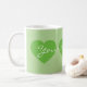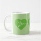 This mug features three shapely spring green hearts on a light green background overlaid by template text. A green hearts mug makes a great wedding party favour or a great St. Patrick's Day gift for your Irish lad or lassie love!