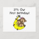 Triplets First Birthday T-shirts, bodysuits, tote bags, buttons, magnets, cards, and more featuring two boys and one girl monkey and a big yellow banana!