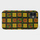 This phone case has a Black History design of circles, triangles, diamonds, lines, and zigzags forming a pattern.