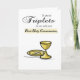 Whether boys or girls, or a mix, this First Communion card will be perfect to congratulate triplets as they receive their First Holy Communion. White background with gold pieces, this will be a keeper for them.