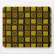 This mouse pad has a Black History design of circles, triangles, diamonds, lines, and zigzags forming a pattern.