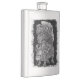 The product is a good size and came exactly as it was pictured. The lid is not attached to the flask, which could be dangerous on drunken nights... The print came out surprisingly well and looks very sharp. Would definitely recommend.
