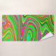 Trippy Lime Green and Magenta Abstract Groovy Art Bath Towel Set