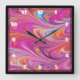 Trippy Pink and Orange Swirly Design Square Wall Clock