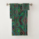 Trippy Retro Black and Lime Green Abstract Pattern Bath Towel Set