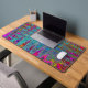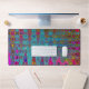 This Cool Colourful Desk Mat features a Trippy Sky Blue Abstract Retro Atomic Waves Design with Magenta, Yellow, Aqua, Purple, Turquoise, and Red Accents. The result is a colourful, trippy, groovy, wavy marbled abstract design that you will love!