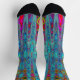 These Cool Colourful all over print Unisex Socks feature a Trippy Sky Blue Abstract Retro Atomic Waves Design with Magenta, Yellow, Aqua, Purple, Turquoise, and Red Accents. The result is a colourful, trippy, groovy, wavy marbled abstract design that you will love!