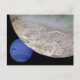 Nasa space photograph of planetary moon Triton with Neptune in the distance.