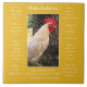 This large 6x6-inch ceramic tile is a humourous look at what a chicken/rooster might have on their bucket list. Marigold Yellow background, white text and a photo printed on of a Rhode Island White rooster standing by a tree trunk. Complete the look by adding a frame to your trivet to keep on stand by in your kitchen.