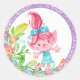 Troll stickers with cute watercolor troll on a pretty purple and teal blue floral background. These cute troll stickers can be customised with text and you can change the background colour.
