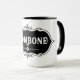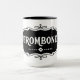 Trombone in decorative text against a black emblem is a unique gift design for low brass musicians, music teachers and students in concert and marching band.