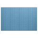 White scattered trombones on a blue background.