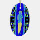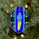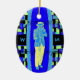 A trombonist, dressed in vintage Rag Time jazz attire, plays his horn. The colourful background is a combination of black, bright blue and green. Music notes float across the top of the design. You can almost imagine the lively Dixie Land music playing. There are templates for initials and the design is the same on both sides. The music lover in your life will love this fun unique ornament. It's perfect for gifting anytime.