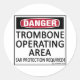 Danger, Trombone Operating Area! Ear Protection Required! This gives them fair warning! See all our musical designs on on cups, mugs, tee shirts, sweatshirts, hats, and other gifts and clothing.