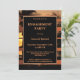 Romantic engagement party invitation featuring a sunset at a tropical beach with palm trees. Beautiful when you a plan a tropical or destination wedding.