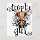 Cute racing gift ideas for girls. A trophy with chequered flags and a heart and flower design and the saying Trophy Girls is available on t-shirts, sweatshirts, mugs, buttons, stickers, caps, aprons, key chains, cards, and more for women and girls. Great gifts for race fans.