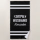 TROPHY HUSBAND funny beach towel for men. Cute personalised beachtowel for future husband, groom to be, husband, soon to be married guy etc. Cool quote summer accessory for him. Make your own fun pool towel. Humourous present for wedding party, bachelor party, bachelorette party, birthday, honeymoon etc. Customisable in different colours. Black and White example. Masculine manly typography template. Add your own funny quote or saying etc. Create his and hers towel set for bride and groom couple.