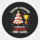Trophy Retro Husband Fueled By Christmas Tree Cake Classic Round Sticker