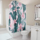 Tropic summer painting seamless pattern with palm banana leaf and plants. Floral jungle pink orchid flowers. Trendy bunch exotic flower wallpaper on pink background.