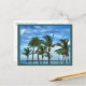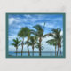 Against a blue and white marbled sky, tropical palms are caressed by a gentle breeze on a picture perfect afternoon on an out island in The Bahamas.