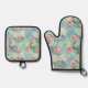 Tropical Aloha Hibiscus Floral Oven Mitt & Pot Holder Set