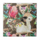 Image by AnnaBabich | Shutterstock. Image ID: 1104401615 | This tropical pattern features a flamingo, ocelot cat, llama, monkey and fennec fox with hummingbirds and butterflies.