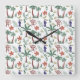 Tropical animals seamless pattern macaw and monkey square wall clock