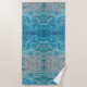 Rippling aqua blue water with a hint of coral and peach, Feel the Tropical Vibes of this naturally beautiful beach towel of aqua and blue in a Boho chic design.