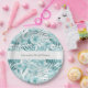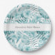 Tropical Aqua Blue Floral Leaves Bridal Shower Paper Plate