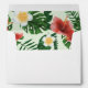 Cute tropical themed envelope featuring adorable exotic parrots and botanical tropical greenery.